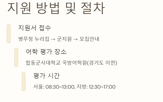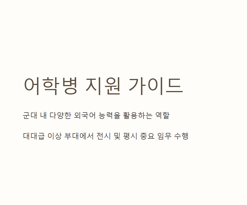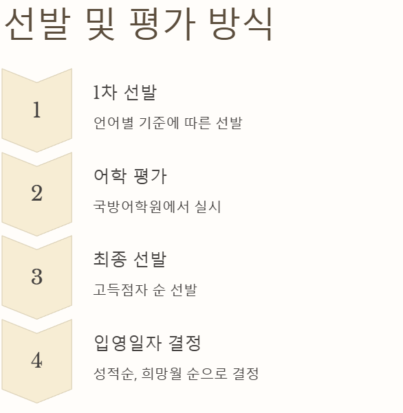 어학병의 지원 자격, 언어별 자격 기준, 평가 방식 등을 상세히 소개합니다. 어학병을 목표로 하고 있다면 필독하시기 바랍니다.