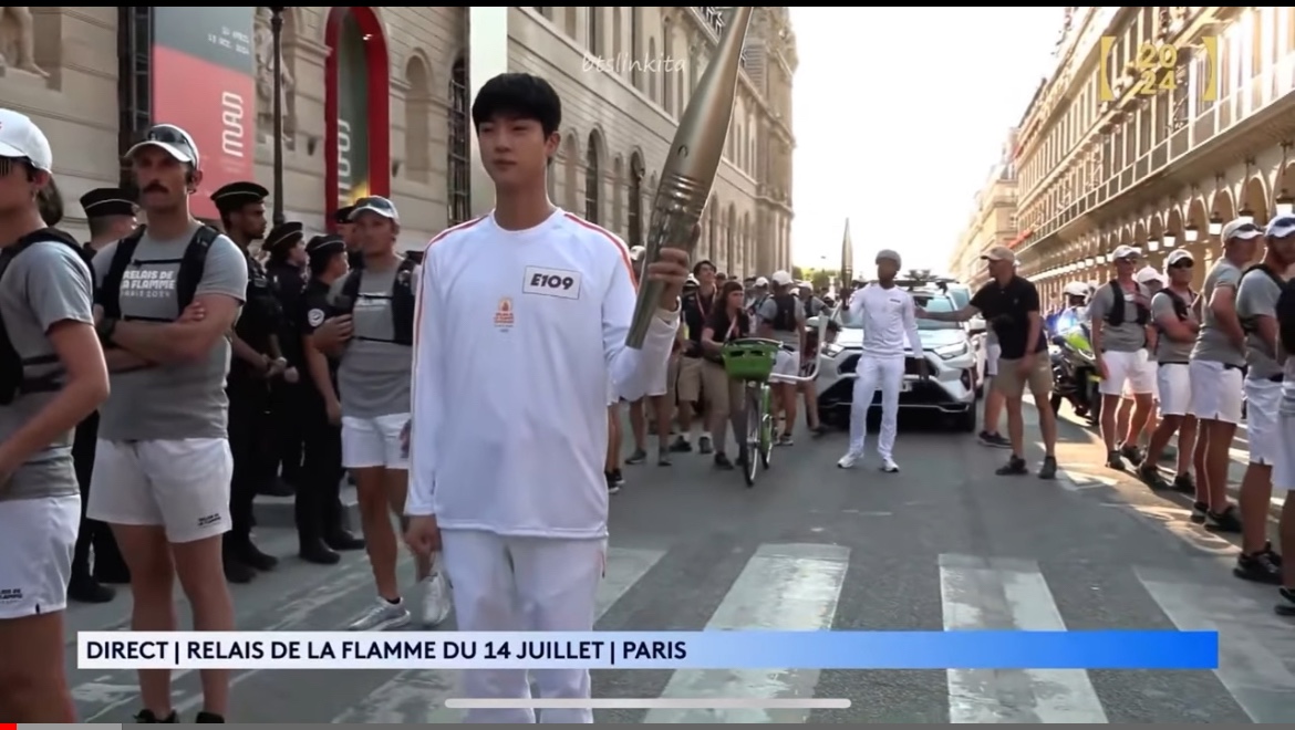 지난 7월 14일, 방탄소년단(BTS)의 진이 프랑스 파리에서 열린 2024 올림픽 성화봉송 행사에서 성화봉송자로 참여했습니다.