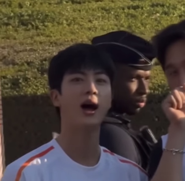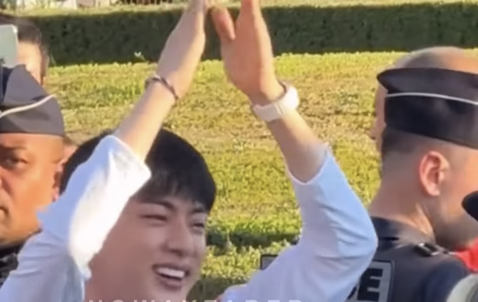 팬들은 진의 이름을 외치며 환호했고, 진은 이에 손을 흔들며 화답했습니다.