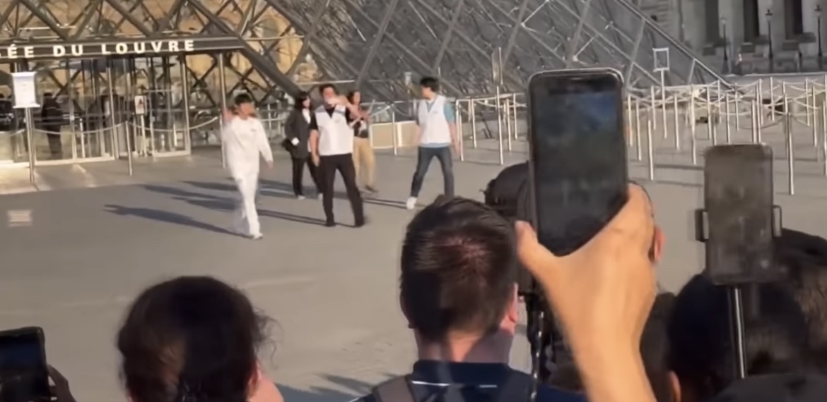 이번 행사는 루브르 박물관 앞에서 진행되었으며, 진은 많은 팬들의 응원 속에서 성화를 들고 행진했습니다.